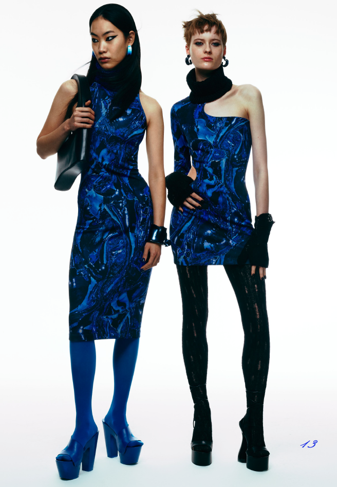Blending opulence and purity, inspired by Renaissance ceramics and featuring white majolica and gold as symbols of rebirth and divinity. Materials are carefully selected for sustainability, including regenerated nylon from fishing nets, organic nettle yarn, and organic cotton, with inkjet printing technology used to minimize waste and energy consumption..