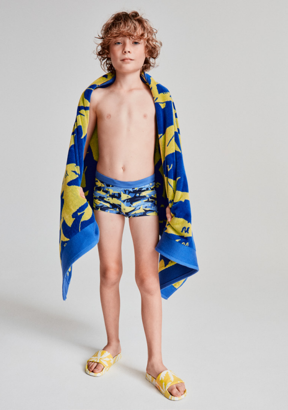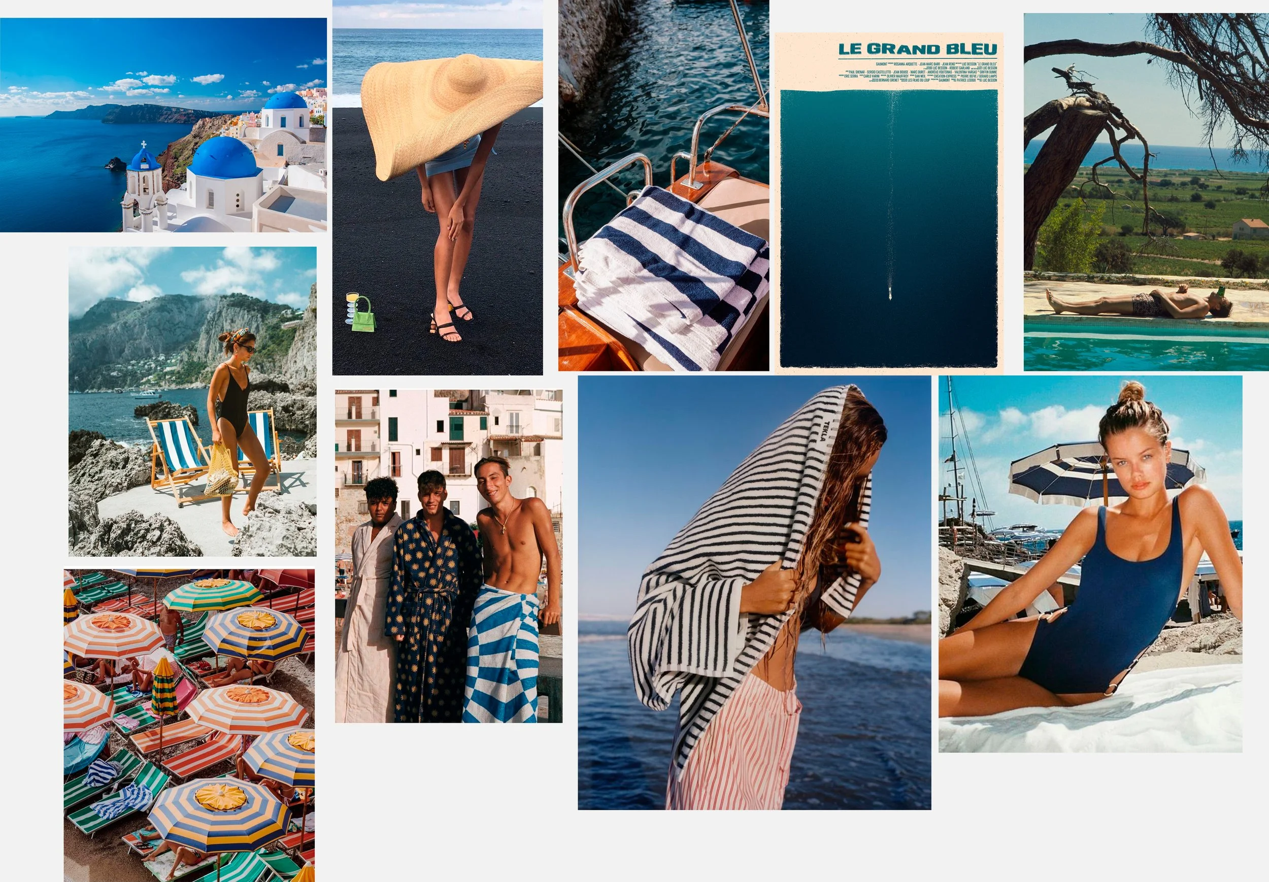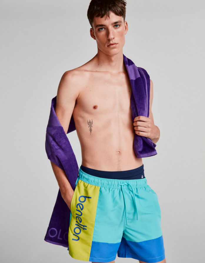 This swimwear collection, part of the Benetton Summer 25 line, celebrates the essence of summer through two distinct yet harmonious themes. The first draws inspiration from Greece and the Mediterranean, capturing the serenity of blue skies, whitewashed architecture, and sandy shores. This range features classic and fresh designs in a palette of blue, white, and sand. The second theme dives into the vibrancy of the Pacific, embracing tropical energy with bold, dynamic colors and playful patterns. The hibiscus flower takes center stage, infusing the collection with a lively, exotic flair.
